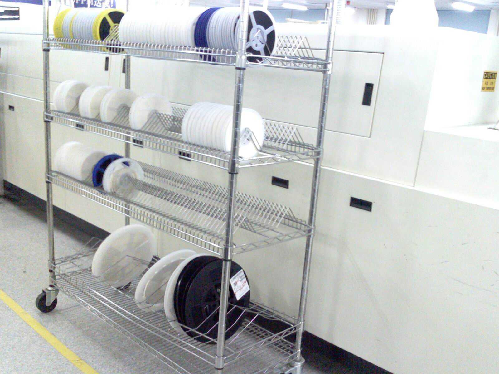 电子线网周转车,电子物料架,精益管周转车,电子线网周转车产品特点:(1)结构独特:采用碳钢镀铬网片及支柱组合而成,其独特的造型结构,设计灵巧,装卸简便,洁净亮丽,坚固的碳钢镀铬网片能促进空气流通,减少尘埃积聚,开放式的设计,令储物一眼可见,可以一层一层的拉出。